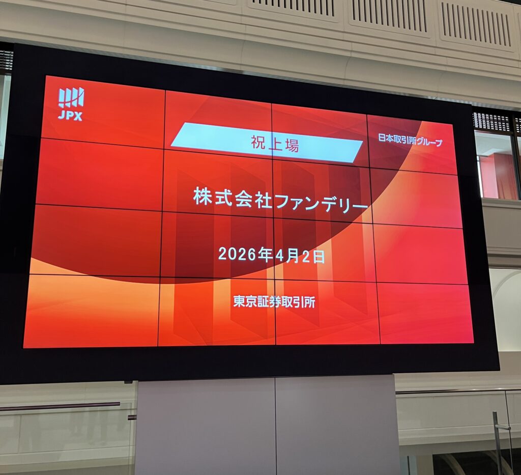 そして、電光掲示版に「祝 ファンデリ―上場」の文字が✨