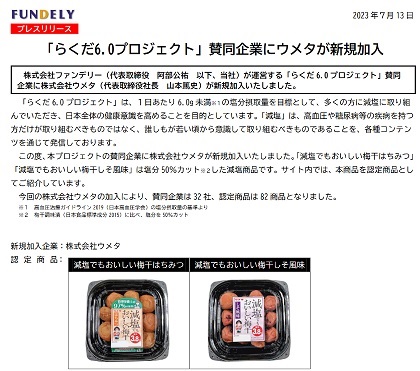 この度、暑い夏にぴったりな減塩商品が『らくだ6.0プロジェクト』に