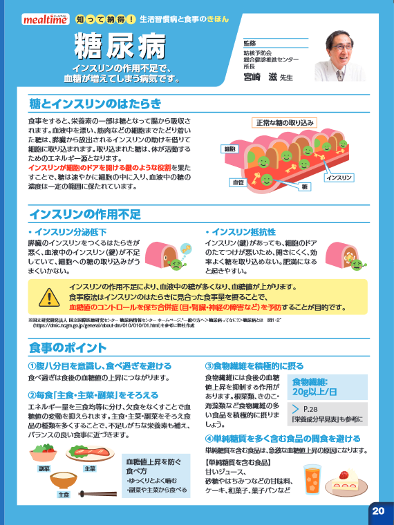 ミールタイムの誌面には、お医者様監修の「知って納得!生活習慣病と食事のきほん」