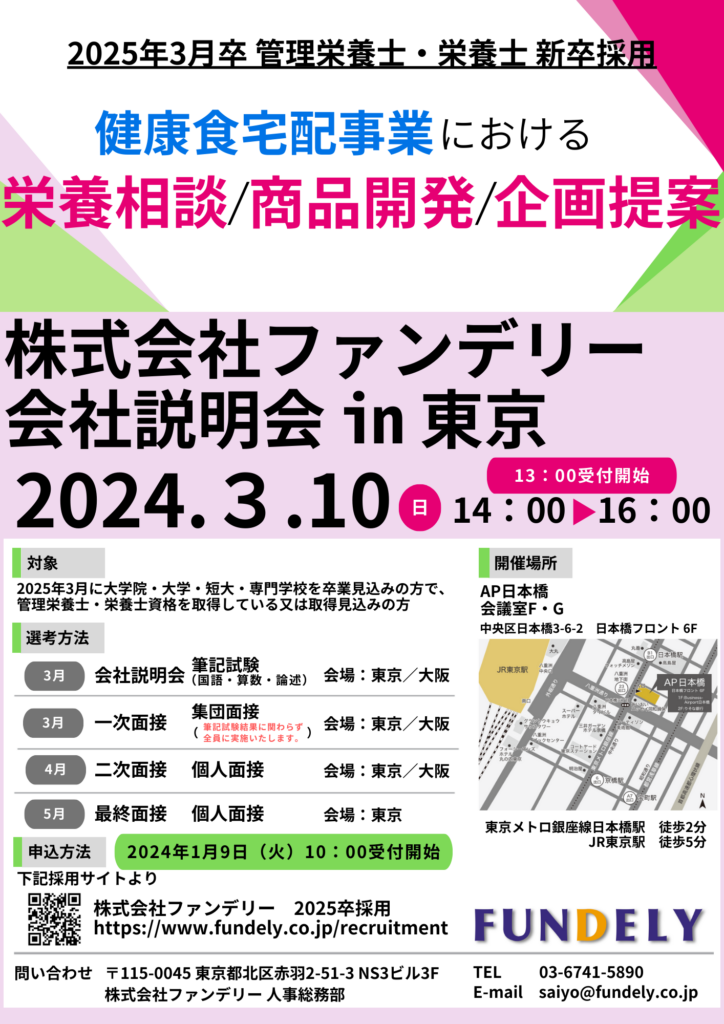 「ファンデリー会社説明会」の詳細については以下の通りです。