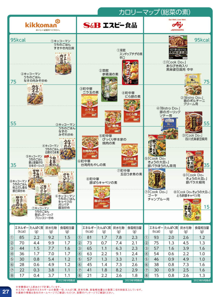 また、市販商品の栄養成分マップは実際販売されてる商品の栄養価を