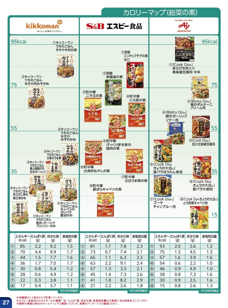 市販の商品を使ったカロリーマップや塩分マップが好評で、