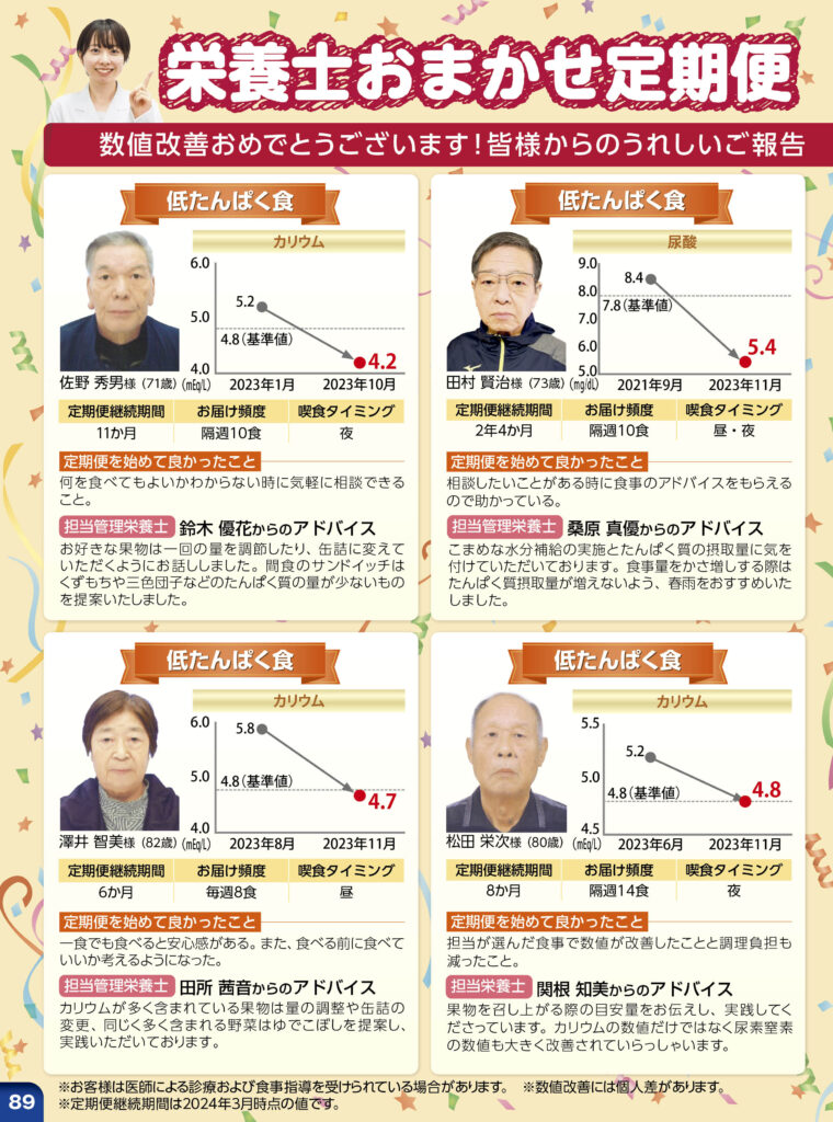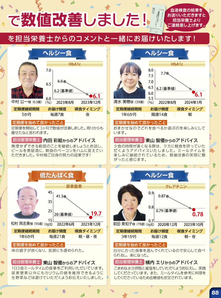 ミールタイムをご利用のお客様は、糖尿病や腎臓病をお持ちの方が多いので