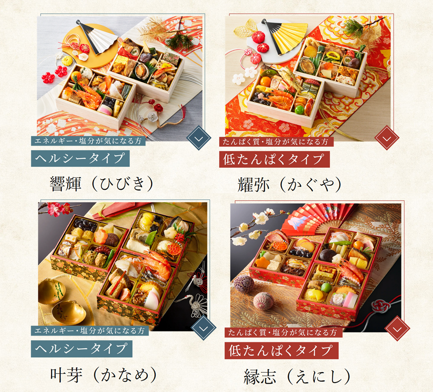 ミールタイムのおせちはヘルシータイプ、低たんぱくタイプと