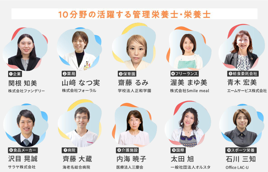 病院・給食の他、スポーツ栄養・国際栄養士など、