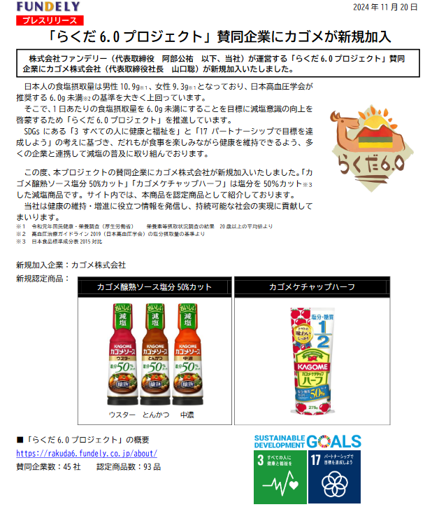 『らくだ6.0プロジェクト』では、1日あたり 6.0g 未満の塩分摂取量を