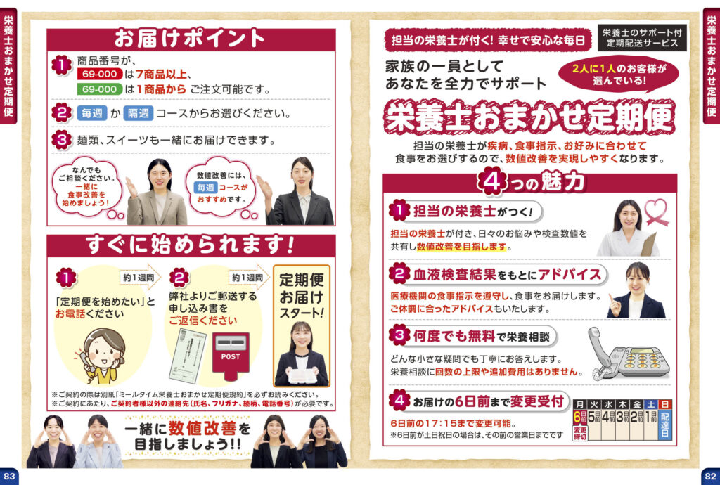 医療機関の食事指示を遵守し、お客様のお身体に合った食事を、栄養士が選んでお届けします。