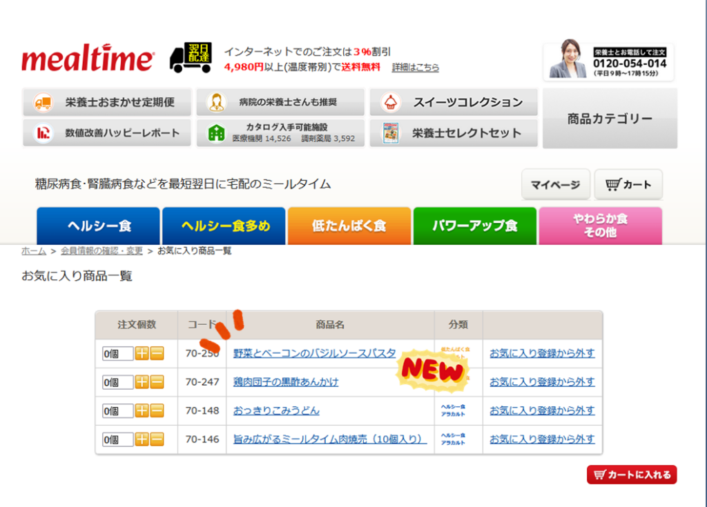 ミールタイムECサイトの便利な「お気に入り」機能!