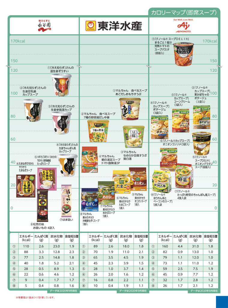 過去のカタログに記載していた「栄養成分マップ」や「栄養成分早見表」