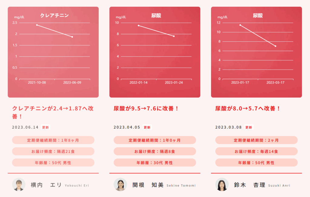 「腎機能の数値が改善して薬が減った」などの声が多数寄せられています。