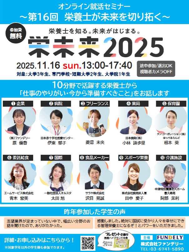 管理栄養士・栄養士の道を志す学生にぜひ知っていただきたい機会です。