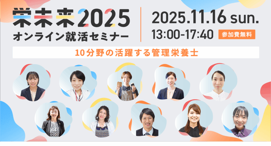 「栄未来2025」は、管理栄養士・栄養士を目指す学生さん向けの就活セミナーです。