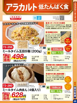 また、上段でご紹介している五目炒飯は低たんぱく食で一番人気の商品です。