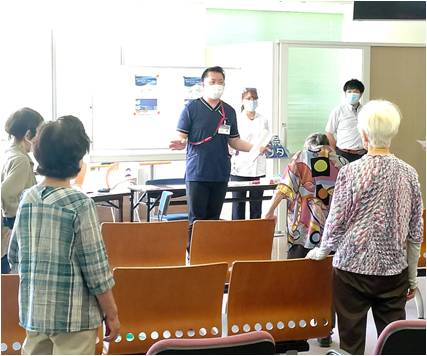 理学療法士の上野先生からは、講義の後に実際にロビーに出て、