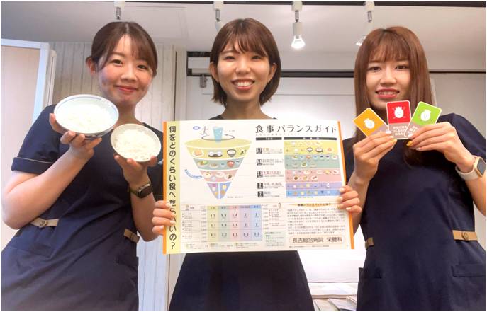 栄養科の(左)石持美紅様、(真ん中)中田真帆様、