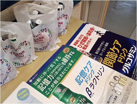最後に、弊社からは記憶ケアと関節ケアドリンクをお配りし、