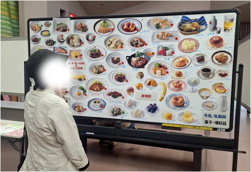 主食・主菜・副菜などの料理の写真が貼られていて、
