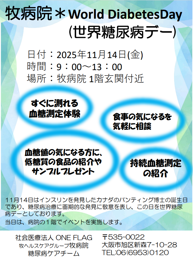 11月14日(金)に牧病院様にて世界糖尿病デーイベントが開催されました。