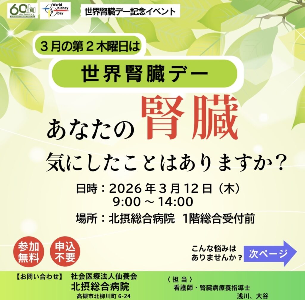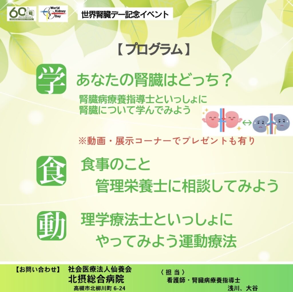 3月12日(木)に北摂総合病院様にて世界腎臓デー