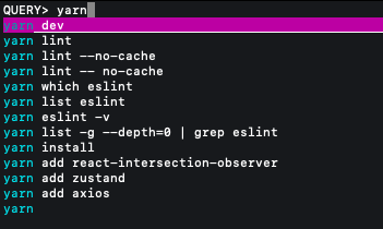 (yarnと打つと過去に打ったyarnを含むコマンドが出てくる)