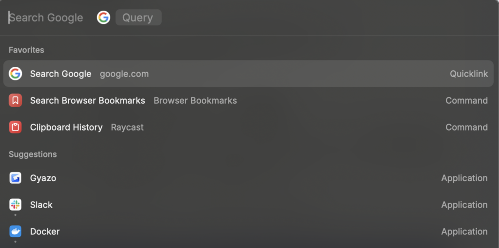 ※ こちらのRaycastはMacの標準機能であるSpotlightの自由度を高めたようなアプリになります。