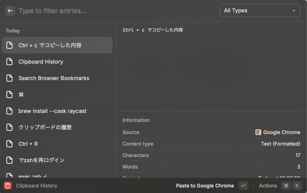 ②検索、ブックマーク、クリップボードの履歴などの呼び出しを一箇所で行えるRaycast